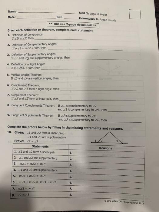 2.8 Angle Proofs Answerkey Gina Wilson / Gina Wilson All